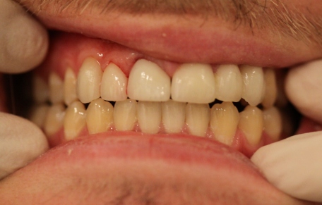 The teeth on either side are prepared as for crowns and a bridge is placed over the the prepared teeth. The gap is then filled with a cosmetically acceptable tooth to restore aesthetics.