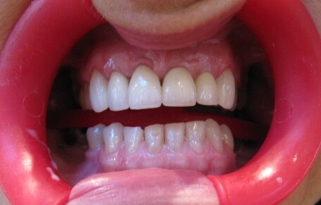 A crown or cap is a lab made replacement for a tooth. It matches the shape, contour, shape and colour of the original tooth. Crowns are made from porcelain and metal, porcelain only and metal, usually gold.