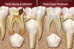 In the event of decay reaching the pulp or trauma, the pulp can become infected or inflamed. This gives rise to pain. If it continues, the whole pulp down to the root canal is infected and causes an abscess which is usually present at the tip of root. Pain is of a throbbing type.